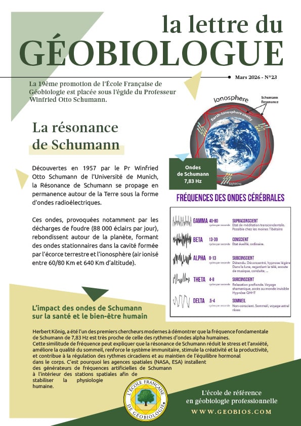JOURNÉE DÉCOUVERTE GÉOBIOLOGIE Le 29 novembre 2025, à partir de 10 heures Centre GEOBIOS – 206 Avenue Marcel Dassault – 33700 MÉRIGNAC Nombre de places limité ! Au programme : Présentation et enjeux de la géobiologie Initiation à la radiesthésie et à l’antenne de Lecher Électromagnétisme : Bonnes pratiques et modération sont de mise État des lieux La 5G Perspectives de formation à l’École Française de Géobiologie : autonomie et prévention Inscriptions par mail : contact@geobios.com Tarifs : 120 € la